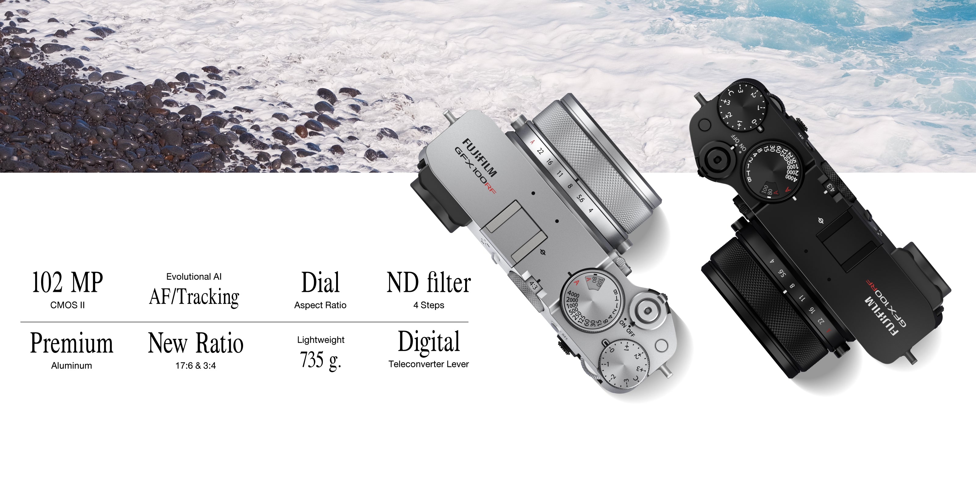 กล้องดิจิทัล Medium compact แบบเลนส์ฟิกซ์รุ่นแรกในซีรีย์ GFX ที่มาพร้อมอิมเมจเซ็นเซอร์ ‘GFX102MP CMOS II’ ที่ให้ความละเอียดสูงถึง 102 ล้านพิกเซลและระบบประมวลผลรุ่นล่าสุด 'X-Processor 5' ตัวกล้องมีน้ำหนักเพียง 735 กรัม นับว่าเป็นกล้อง Medium Format ที่เบาที่สุดในซีรีส์ GFX ที่แม้จะเป็นกล้องแบบเลนส์ฟิกซ์ ก็ยังคงให้การถ่ายภาพคุณภาพสูงที่โดดเด่นให้กับผู้ใช้งานได้มากยิ่งขึ้น