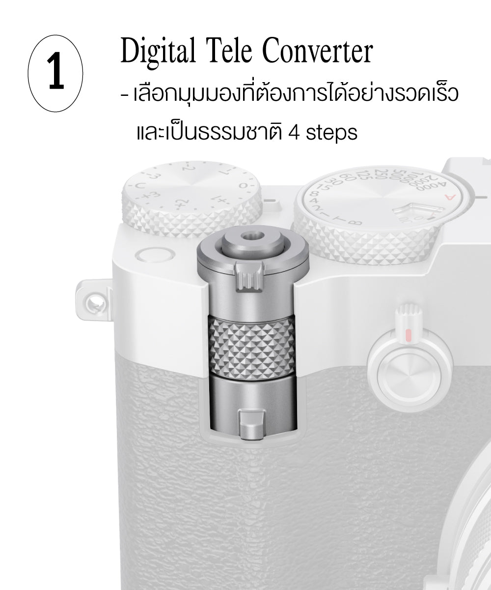 Fujifilm ออกแบบก้านปรับไว้ด้านหน้ากล้อง เพื่อให้ใช้งานฟังก์ชัน Digital Teleconverter ได้ง่ายขึ้น สามารถเลือกมุมมองได้ 4 ระดับ ได้แก่ 35 มม. (28 มม.), 45 มม. (36 มม.), 63 มม. (50 มม.), และ 80 มม. (63 มม.) (เทียบเท่าในกล้องระบบ 35 มม.) เพิ่มความยืดหยุ่นในการถ่ายภาพ