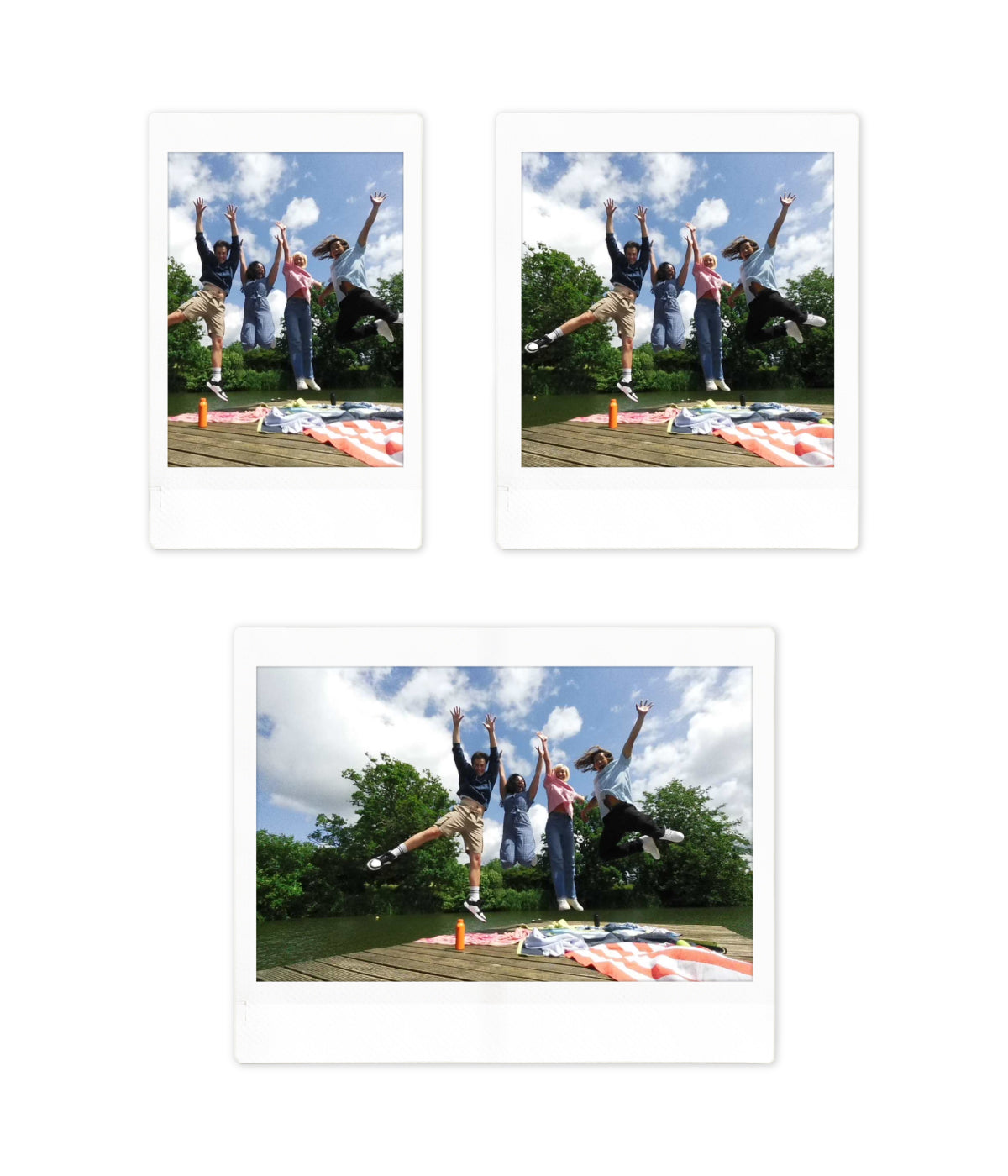 ให้คุณไม่พลาดสักช็อตด้วยการถ่ายรูป INSTAX แบบดิจิทัลอย่างต่อเนื่อง 3, 6, 11 หรือ 21 ช็อตแล้วรวมรูปด้วยแอนิเมชันจาก INSTAX