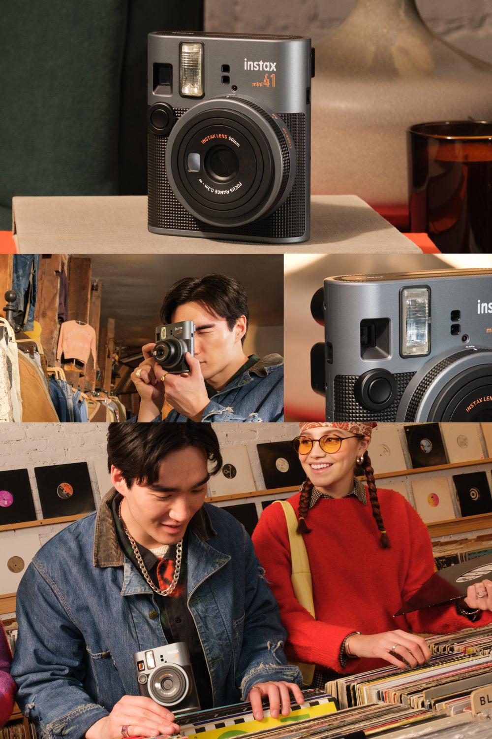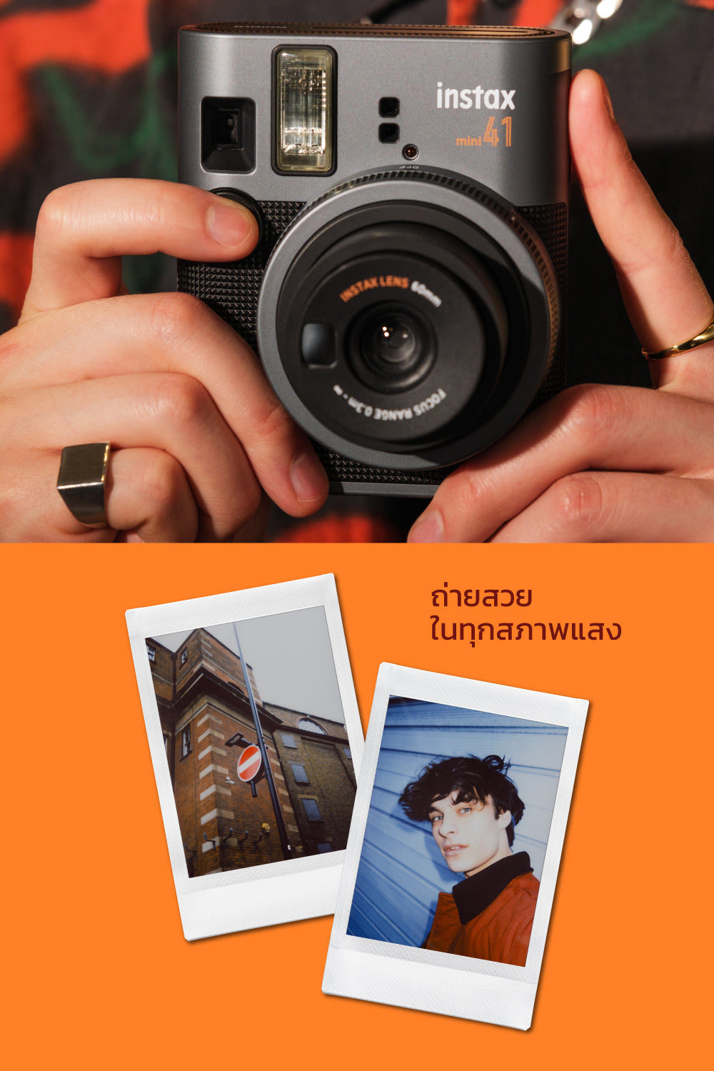 กล้องฟิล์มอินสแตนท์ขนาดฟิล์ม mini ตัวกล้องผลิตจากวัสดุคุณภาพดี ถ่ายรูปสวยไม่ว่าจะกลางแจ้งหรือที่แสงน้อยด้วยระบบปรับแสงอัตโนมัติ มาพร้อมโหมดเซลฟี่ใช้งานง่ายๆเพียงแค่หมุนเลนส์ออกมา ช่วยให้คุณถ่ายภาพระยะใกล้ได้สวยคมชัดยิ่งขึ้น instax mini 41 มาในรูปแบบกล้องสุดคลาสสิคที่คุณไม่ควรพลาด