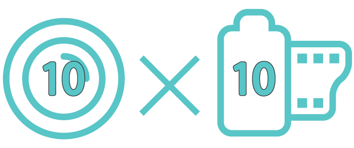 10 รูปแบบเลนส์, 10 รูปแบบฟิล์ม รวม 100 รูปแบบเมื่อใช้งานร่วมกัน