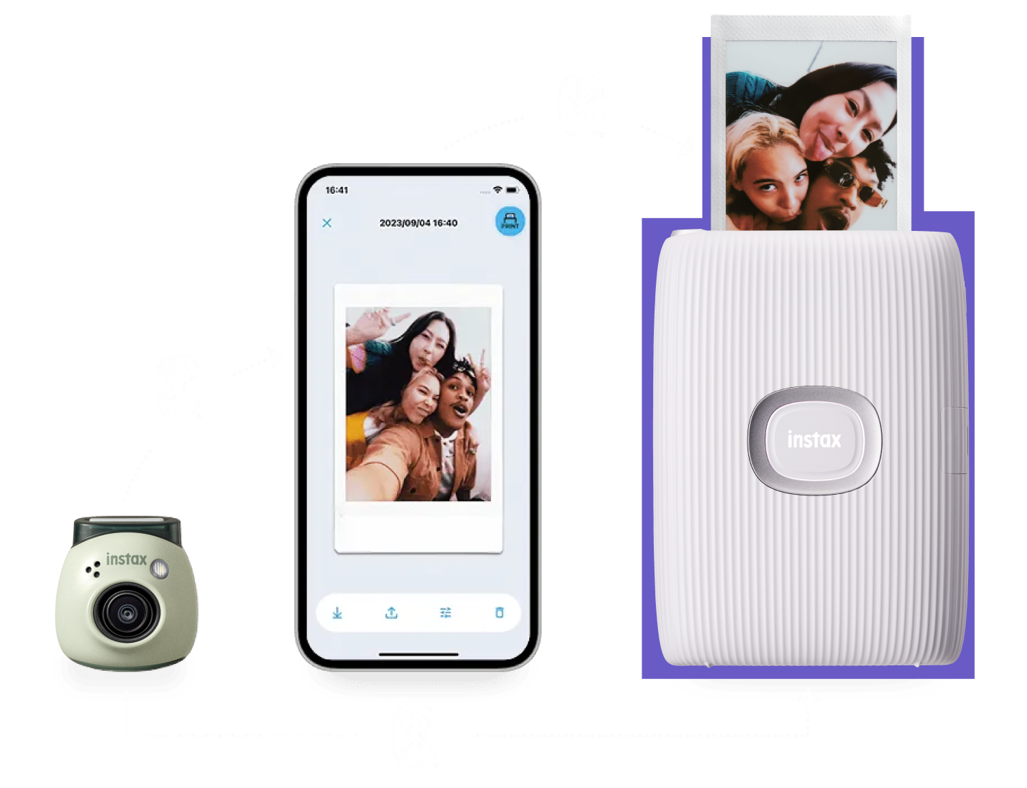 กล้องตัวเล็กที่สุดจาก INSTAX เหมาะสำหรับไปทุกที่กับคุณ ส่งรูปผ่าน Bluetooth ไปยังมือถือเพียงดาวน์โหลดแอป INSTAX Pal™