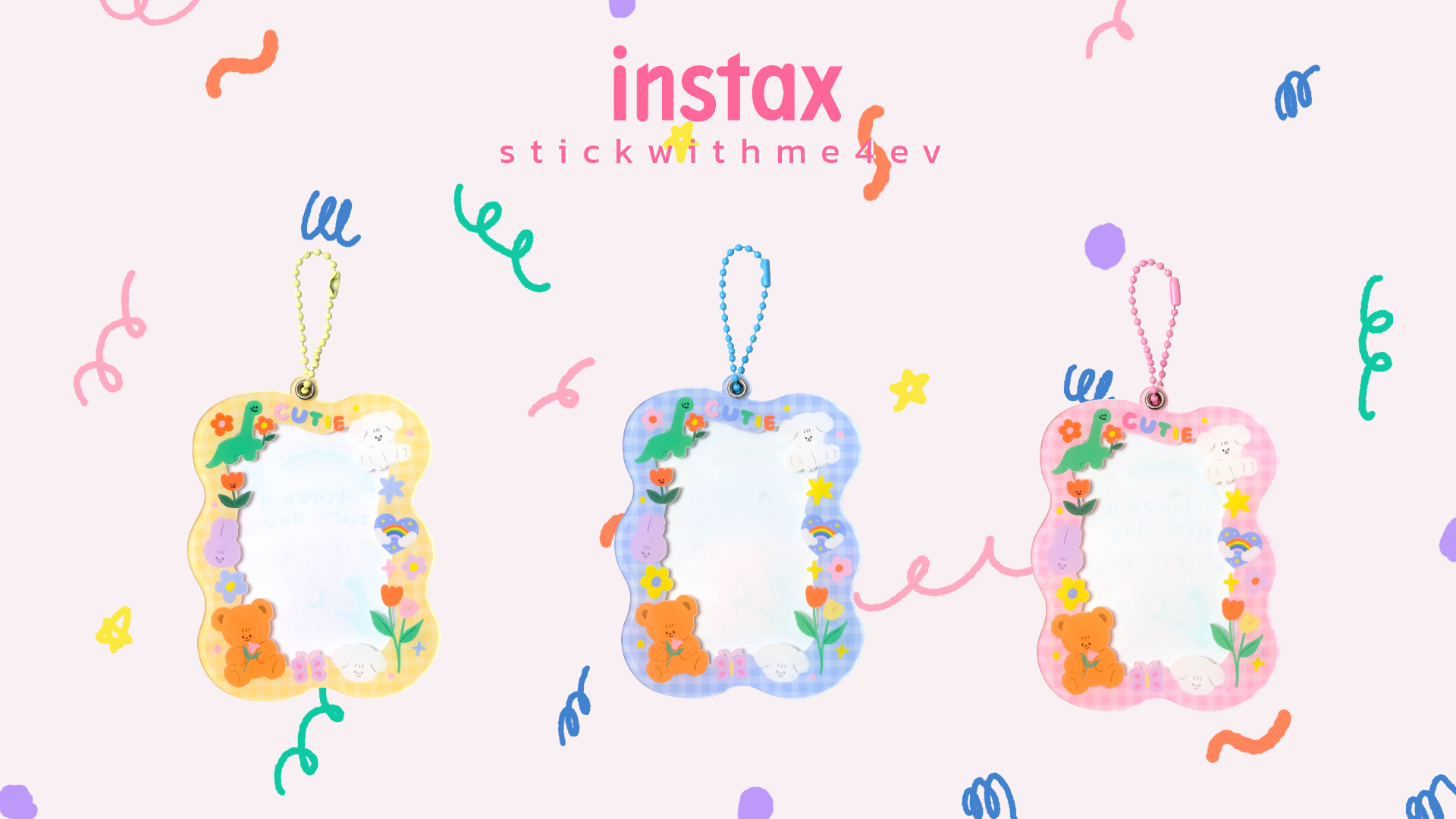 instax X Stickwithme4ev เป็นทั้งพวงกุญแจสุดน่ารัก และเป็นกรอบรูปใส่ฟิล์มขนาด mini (ขนาดบัตรประชาชน) สุดคิวท์ มีให้เลือก 3 สี สีเหลือง สีน้ำเงิน และสีชมพู